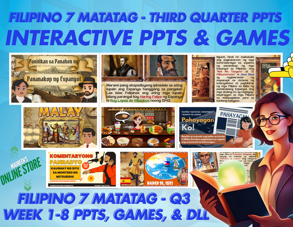 FILIPINO 7 MATATAG - QUARTER 3 PPTS and GAMES - LESSONS 1-8 (FREE DLL)